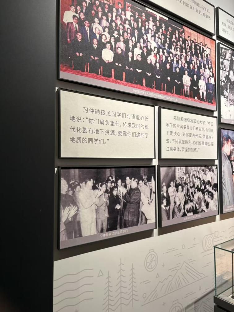 指尖轻抚过陈列着老一辈地质人使用过的器具与标本的展柜,目光追随着照片中师生徒步野外、跋山涉科的坚毅身影,耳畔回响着讲解员娓娓道来的建校历程——从服务国家找矿事业的初心,到领跑地质学科前沿的使命。那些曾经只存在于纸页间的勘探故事、那些填补学科空白的科研突破,在这一刻变得鲜活而真切,凝结为可触可感的地质精神。