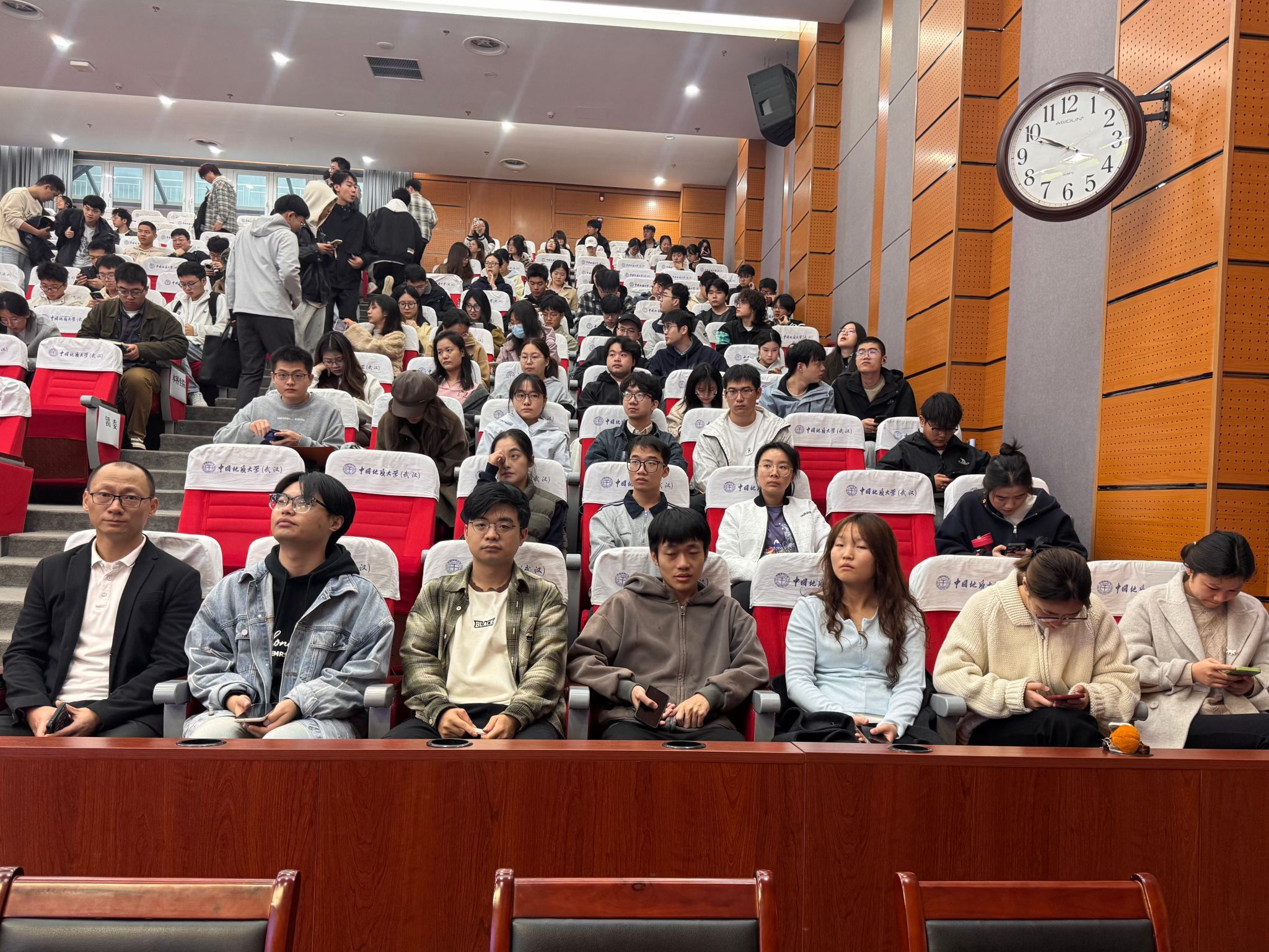本次活动由马克思主义学院阮一帆同志主持。党委宣传部、本科生院、研究生院、团委等单位协同组织,各学院师生代表约350人现场听课。