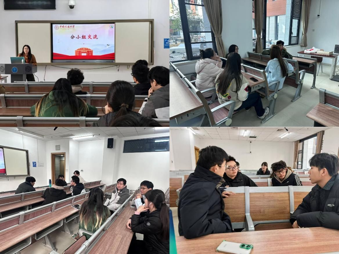 在随后进行的代表分享环节中,各小组推选的发言人依次汇报了讨论成果。第一组代表黄崇政提到:“我们认识到理论学习贵在坚持,关键在于养成日常学习的习惯,让理论学习成为一种生活方式”;第二组代表王宇杰分享道:“我们组有同学主动帮助班级组建学习互助小组的事例让大家深受启发,真正发挥先锋作用就是在集体需要时能够主动担当、勇于作为”;第三组代表严文彬则提到:“作为研一的同学,我们要积极向研二的师兄师姐学习,特别是在科研规范和学术诚信方面见贤思齐,夯实学术根基”。
