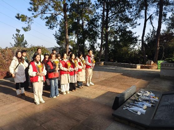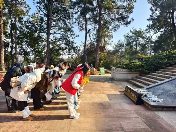 当日9时,纪念园广场气氛庄重。全体学员肃立,由学生代表向抗战先烈敬献花篮。在场人员默哀致敬,缅怀为民族独立解放事业英勇献身的革命先辈。