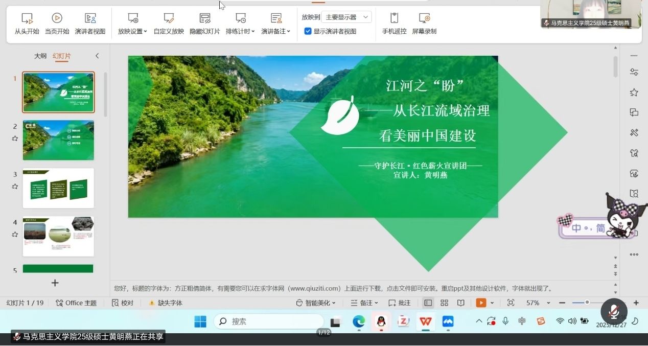 近日,研究生先锋训练营攀登班特邀马克思主义学院“红色之声”红色薪火宣讲团开展主题宣讲活动。宣讲以长江生态保护为切入点,阐述美丽中国建设主题。