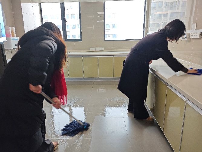 下午3时,学员们分为两组,分别前往男女宿舍楼,在宿管阿姨的指导下,认真检查楼道消防设施、照明设备与公共区域安全隐患,记录并协助处理可能存在的安全问题。随后,学员们拿起扫帚和抹布打扫大厅、擦拭门窗,整理公共用品。