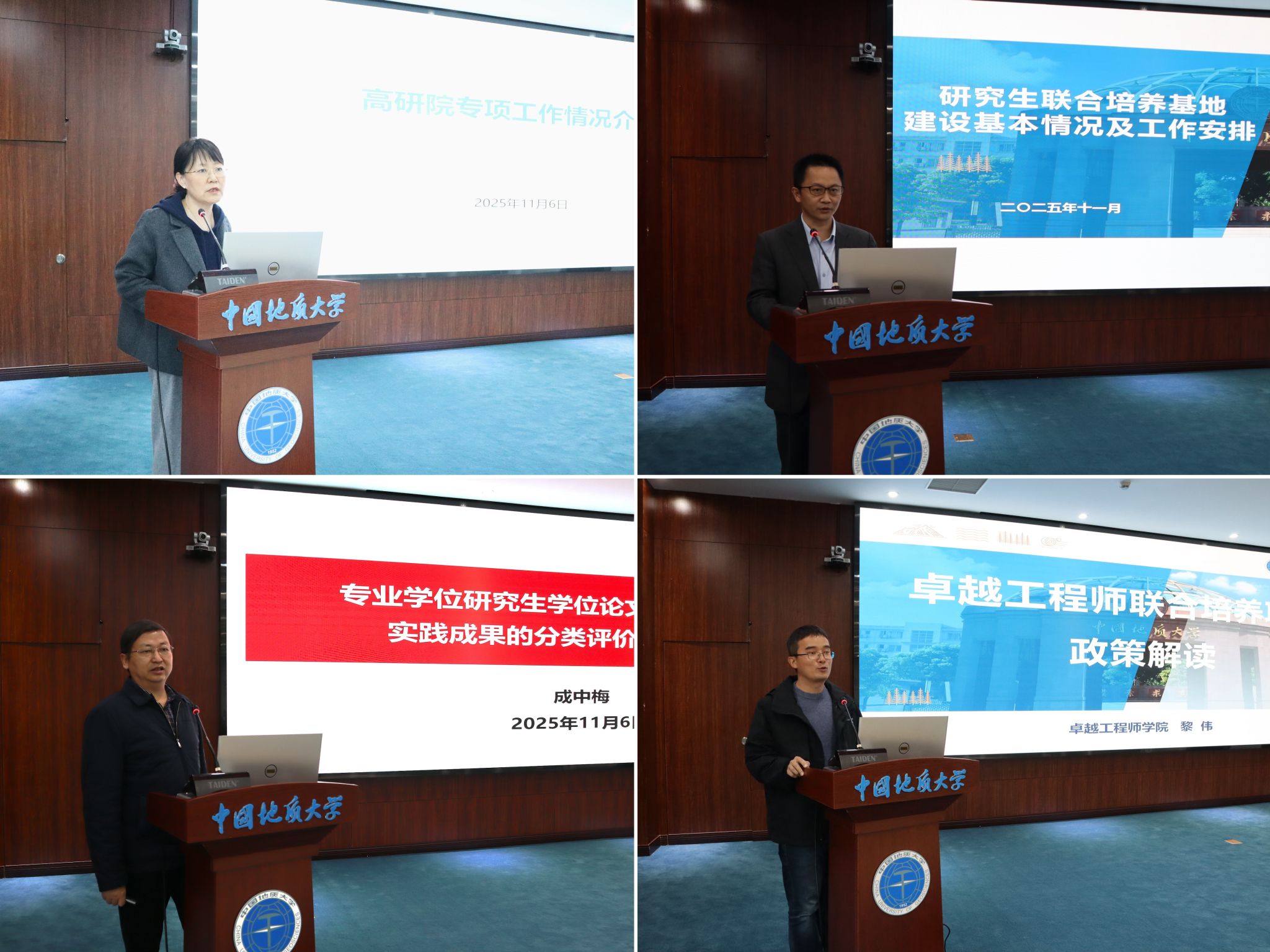 研究生院副院长成中梅讲解了专业学位研究生分类评价机制改革的政策依据,详细介绍了申请学位实践成果认定的实施细则,重点阐释了成果评价的标准与流程。成中梅表示,此项改革致力于构建以实践创新为导向的专业学位评价体系,最终目标是全面提升高层次应用型人才的培养质量。