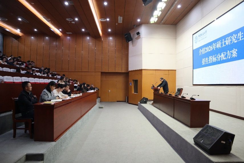赵葵东介绍了2026年硕士研究生招生指标分配方案。招生指标分配以学校学科发展规划为基准,并将就业率、联合培养基地建设、导学思政成效等纳入指标分配体系,强化培养成果导向,鼓励研究生培养单位在研究生教育的各个环节下足功夫。