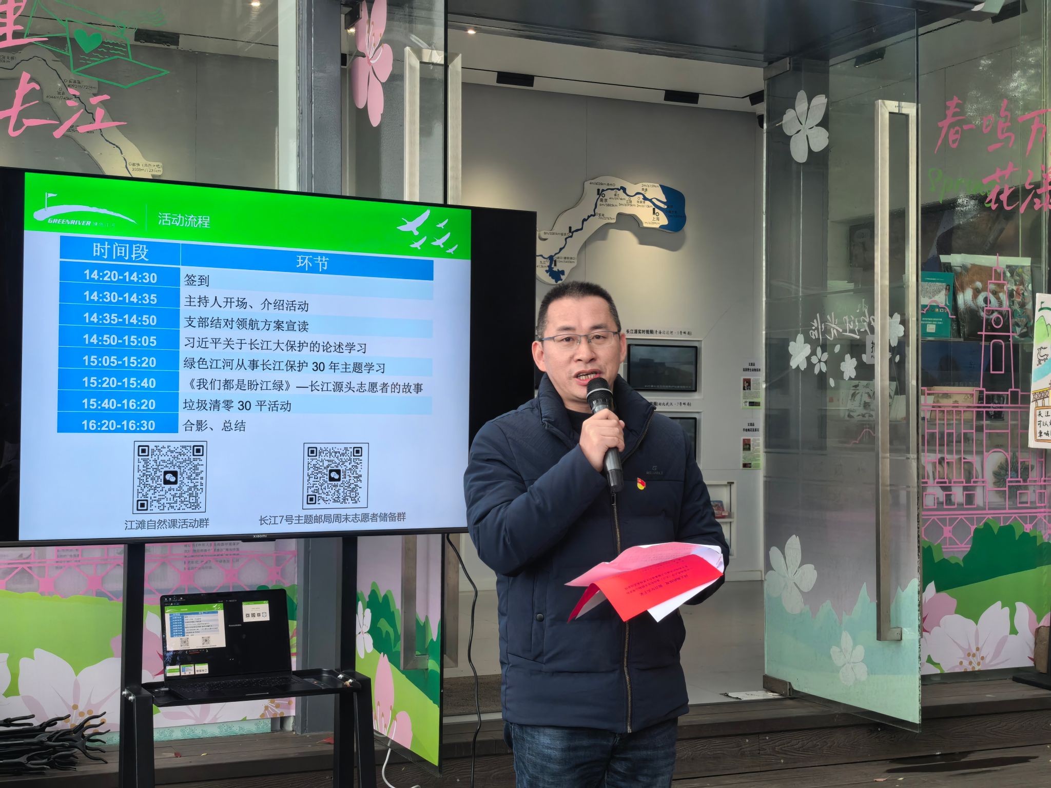 在专题学习环节,四名学生党员领学了习近平总书记关于长江大保护的重要论述,深刻领悟长江大保护的重大战略意义。大家共同学习了绿色江河团队三十年深耕长江保护的实践故事,感受数十年如一日的坚守与担当。《我们都是盼江绿》的分享中,长江源头志愿者的亲身经历让在场师生深受触动。志愿者们不求名利、默默奉献的精神,正是正确政绩观与雷锋精神的生动诠释——真正的政绩,不是显赫的名声,而是默默守护一江清水的执着;真正的实干,不是一时的热情,而是持之以恒的付出。