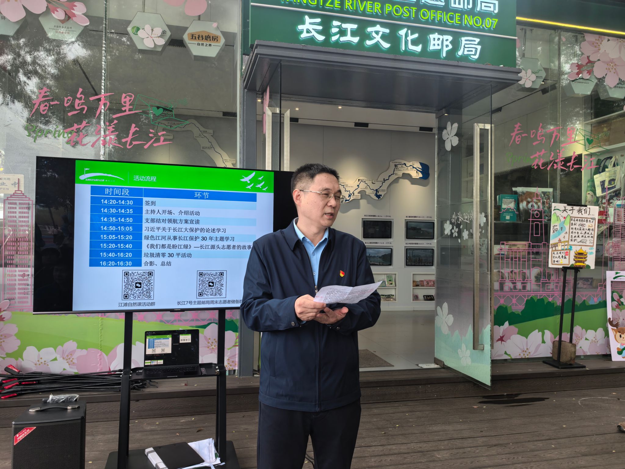 党委宣传部部长徐绍红在仪式上讲话,他指出今年是习近平总书记提出“共抓大保护、不搞大开发”国家战略十周年。去年9月,学校在教育部的指导下牵头成立“守护长江 培根铸魂”育人共同体,实施联合育人行动。这次与长江七号主题邮局的合作活动,正是学校凝聚智慧、携手同行,以更实举措守护大江安澜,以更高标准践行育人使命的生动体现。徐绍红强调,在全党深入开展树立和践行正确政绩观学习教育的背景下,此次支部共建活动具有特殊而重要的意义。正确政绩观,核心在于坚持以人民为中心的发展思想,追求经得起实践、人民、历史检验的实绩。对于高校师生而言,树立正确政绩观,就是要将个人发展融入国家战略和时代需要,将论文写在祖国大地上,将青春奉献给生态文明建设的伟大实践。