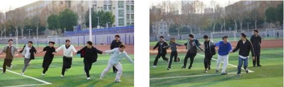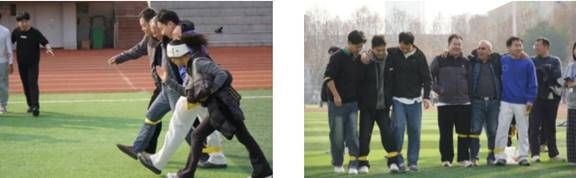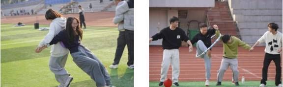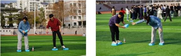 两人三足:从生疏磕绊到步伐同频,绑带串联起导学默契,笑声里消融了讲台与赛场的距离,并肩前行的节奏里满是双向奔赴的热络。