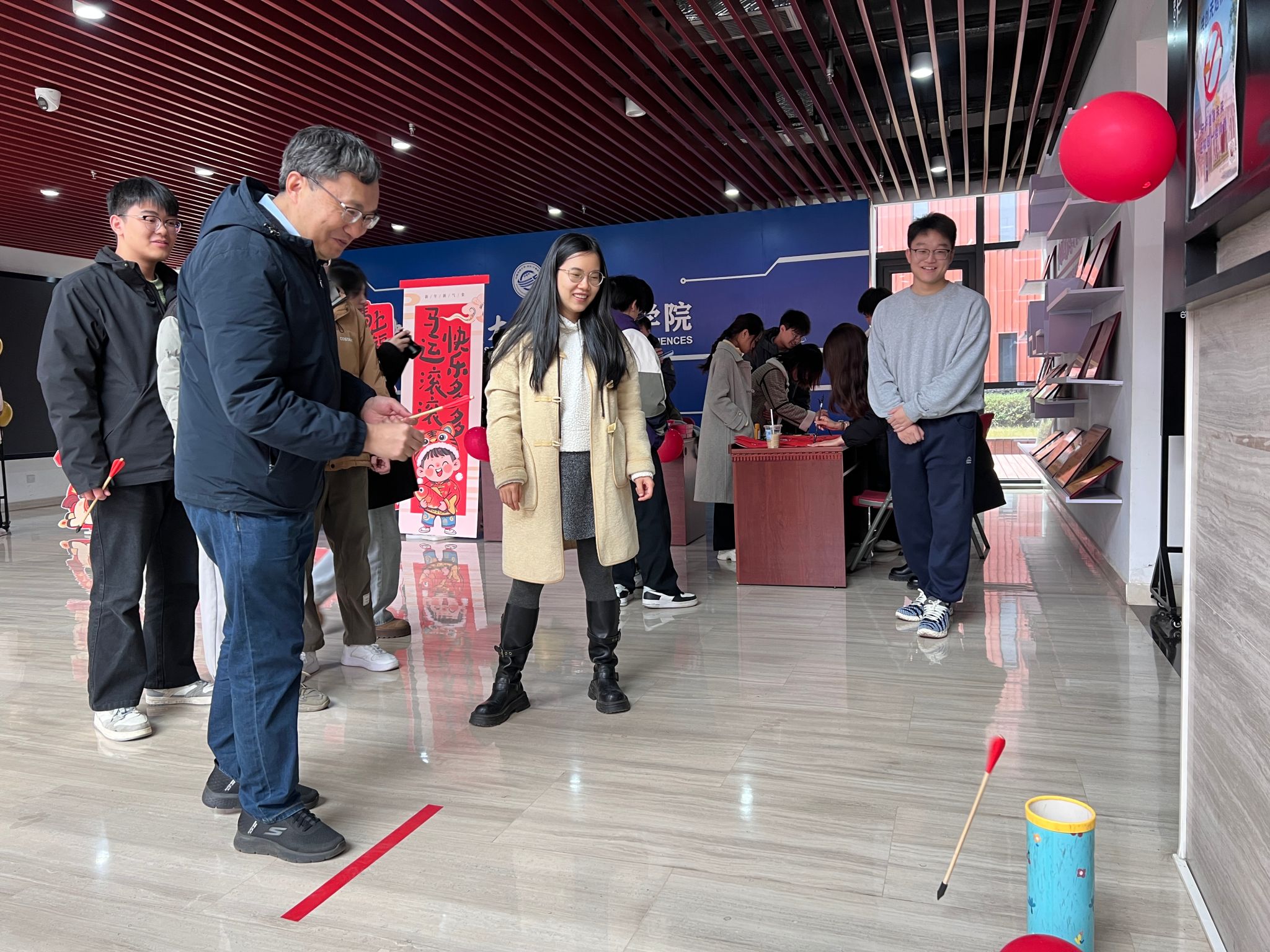 岁末将至,年味渐浓。为浸润传统文化底蕴,搭建师生同心交流的温情桥梁,助力研究生在科研之余放松身心,计算机学院于2025年12月30日下午在学院一楼大厅成功举办了“奋进计科人,共赏传统美”导学新年游园会。