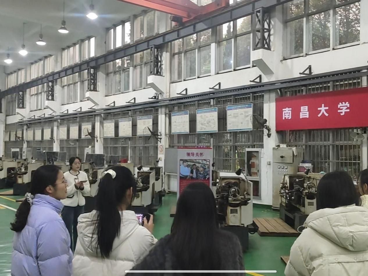 中国地质大学(武汉)实践团成员在南昌大学校史馆前合影留念。馆内陈列的"习近平总书记2008年视察工程训练中心"历史影像与现今智能车间实景形成跨越时空的对话,见证高校实践育人体系的迭代升级。